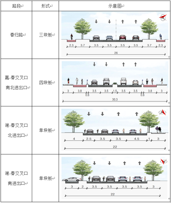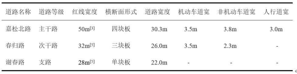 根据上海市相关规划文件,交叉口及路段基本情况如下。嘉松北路为南北向城市主干路,春归路为次干路,谢春路为支路。