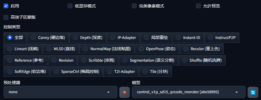 - 下载monster-labs/control_v1p_sd15_qrcode_monster(包括control_v1p_sd15_qrcode_monster.safetensors以及control_v1p_sd15_qrcode_monster.yaml)